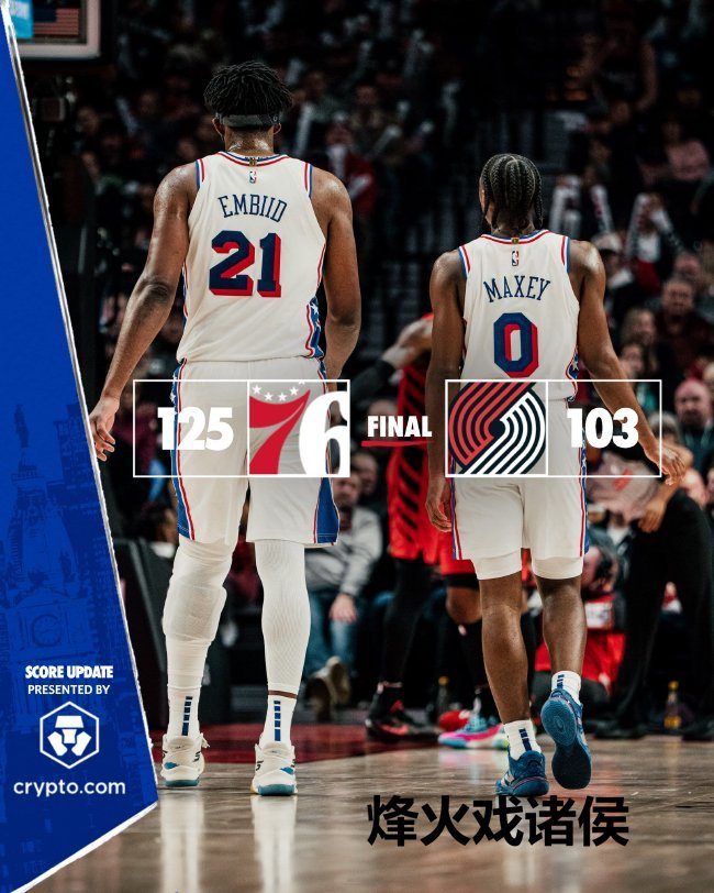 76东谈主(13-17):恩比德37分9篮板、马克西23分3助攻、亚布塞莱16分4篮板、乌布雷15分5篮板8抢断、乔治9分6篮板4助攻